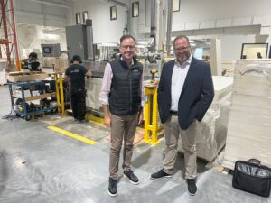 Le directeur général du Groupe Boiseries Raymond, François Roussin, et le directeur général de l’usine de Québec, Benoît Lévesque, se félicitent de l’investissement réalisé en dépit de la menace de non renouvellement des certificats d’immigrants de leurs travailleurs immigrants temporaires, en poste depuis plus de deux ans.