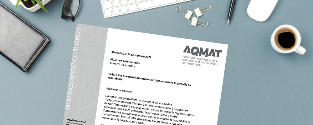 Richard Darveau, président de l’AQMAT, vient d’écrire ce matin une lettre au ministre de la Justice au sujet de la garantie de réparation que les commerces doivent offrir aux clients à partir du 5 octobre.