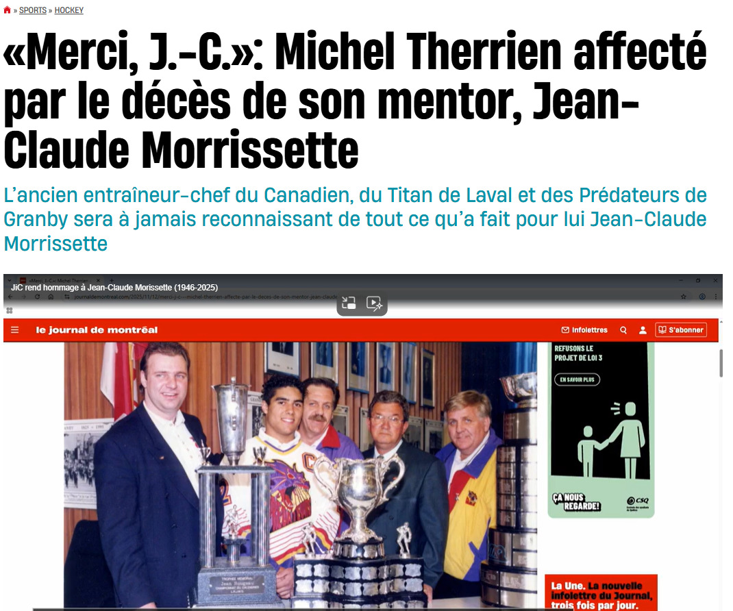 M. Morrissette aura été un homme marquant, un homme de cœur authentique, humble et passionné. Il a toujours brillé par sa sincérité et sa très grande générosité. Tout au long de sa vie, il a su tisser des relations fidèles, imprégnées de respect et de confiance, à l’image de l’homme qu’il était.