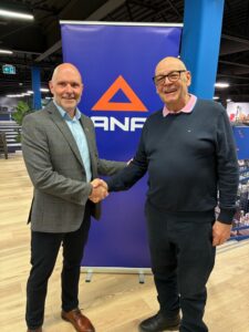 Serge Vézina représentait l’AQMAT à l’ouverture. Il serre ici la main du DG de CANAC, Martin Gamache.