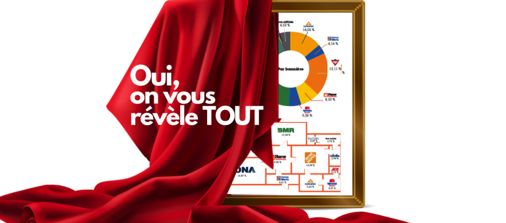 À partir des données aimablement partagées par la direction des bannières, sinon compilées par l’AQMAT et validées par elle, ont été révélé l’état du marché de la quincaillerie décliné en chiffres d’affaires, nombre d’employés, répartition des pieds carrés, etc.