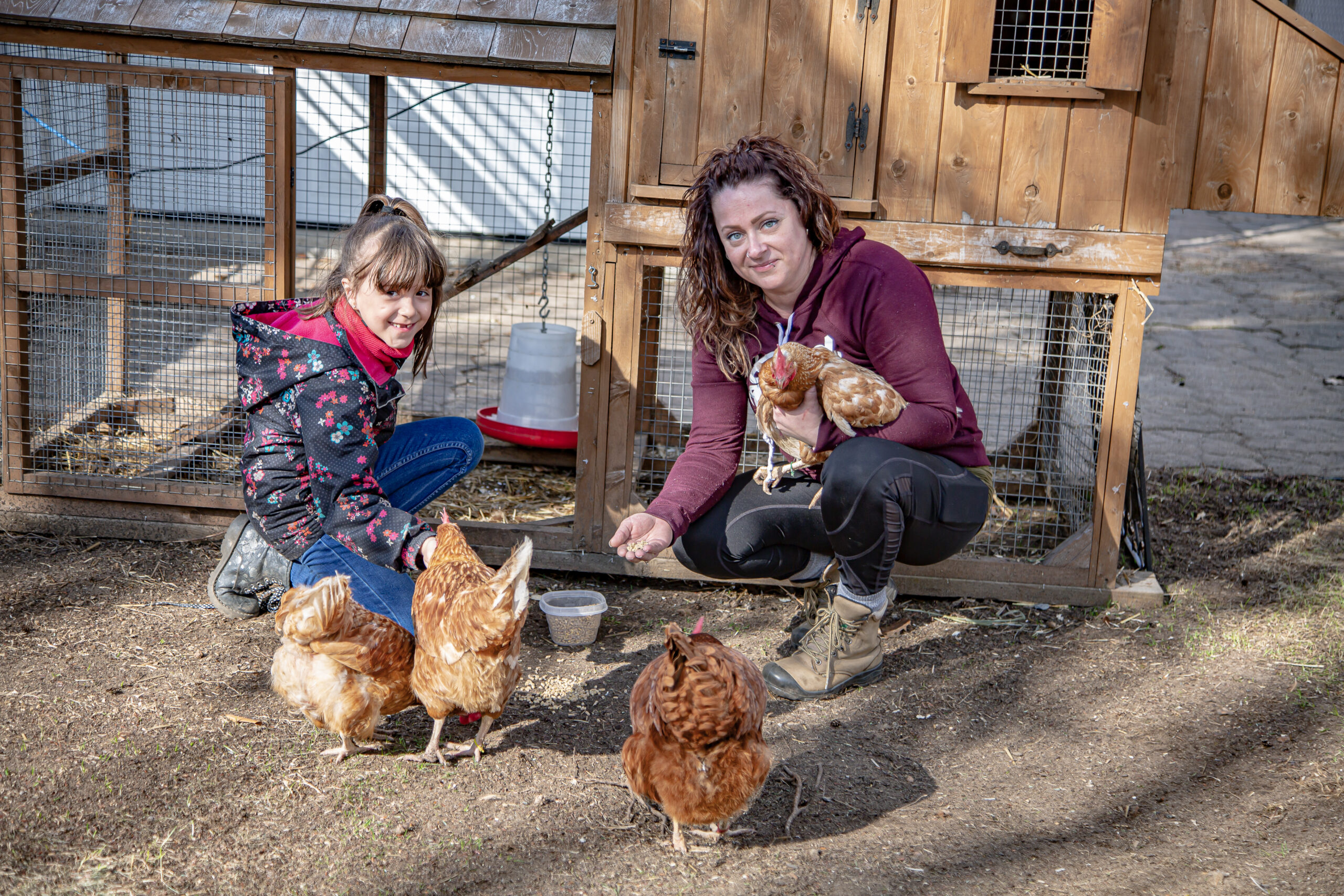 Les poules font le bonheur des enfants comme Alexanne Néron, 8 ans de Sorel-Tracy, la fille d’Andrée-Ann Néron qui a travaillé 10 ans chez Patrick Morin de Sorel-Tracy.