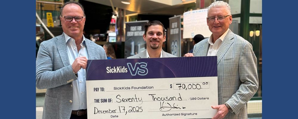 Ken Jenkins, président-directeur général de Castle, ainsi que James Jones, vice-président, Marketing, et Scott Kaluzny, vice-président, Finances, ont récemment eu l’honneur de présenter un chèque en soutien à la SickKids Foundation.