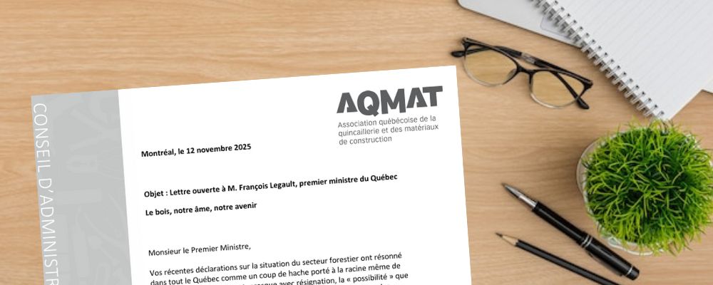 Ce matin, le porte-parole de l’AQMAT a signé une lettre adressée au premier ministre François Legault en réaction aux maux dont souffrent nos collègues des scieries et de l’ensemble des joueurs de la filière bois.