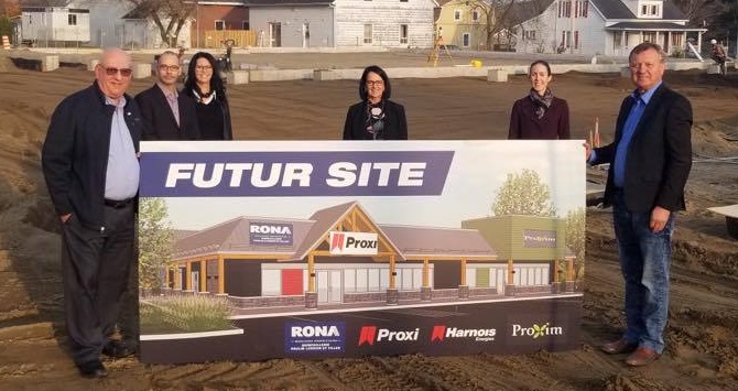 Les nouveaux propriétaires, la Quincaillerie Poulin, Lussier et filles, y opéreront une bannière RONA, une station-service Harnois dotée d’une borne électrique ainsi qu’un dépanneur PROXI. Une pharmacie PROXIM viendra compléter l’ensemble commercial qui générera une douzaine d’emplois.